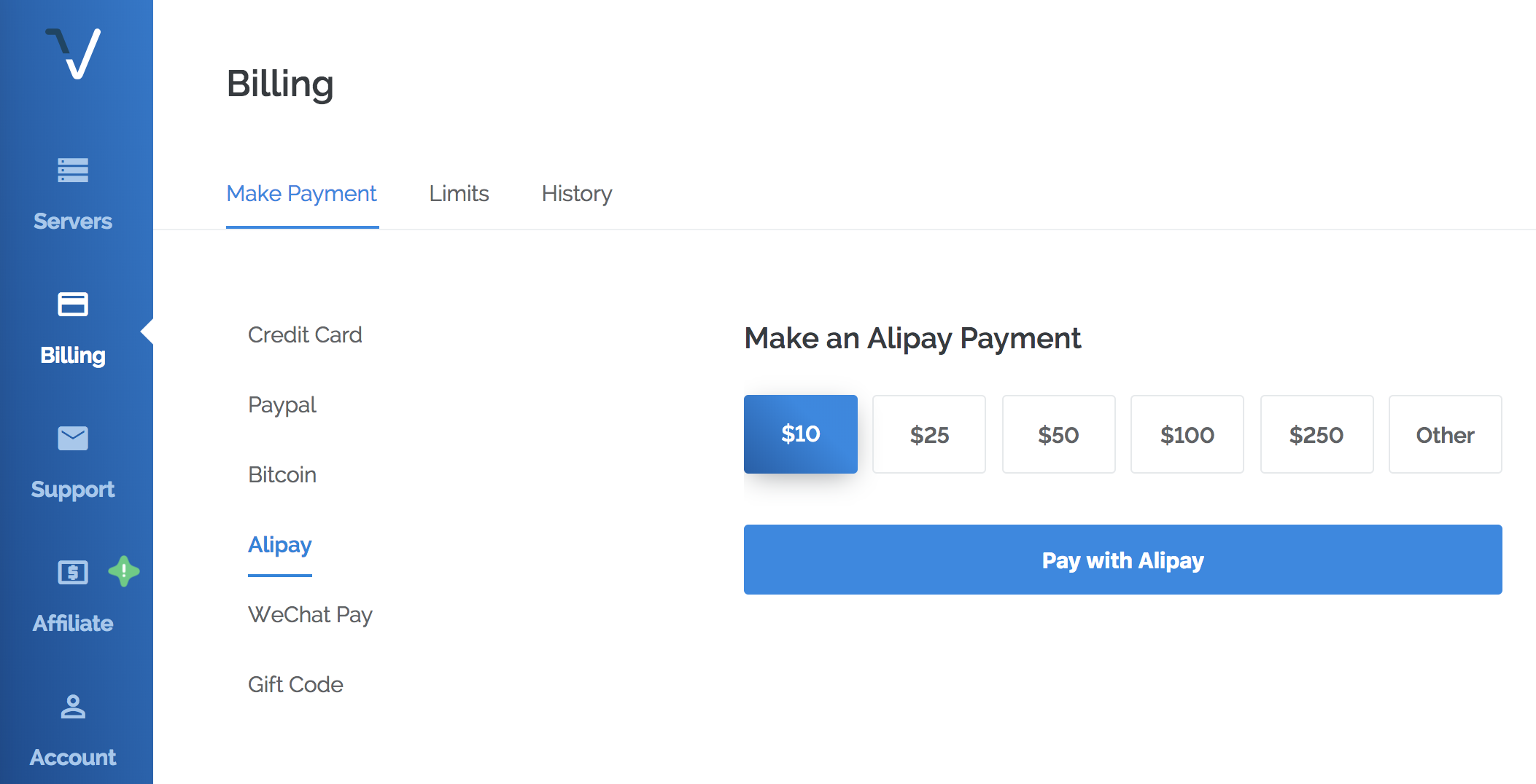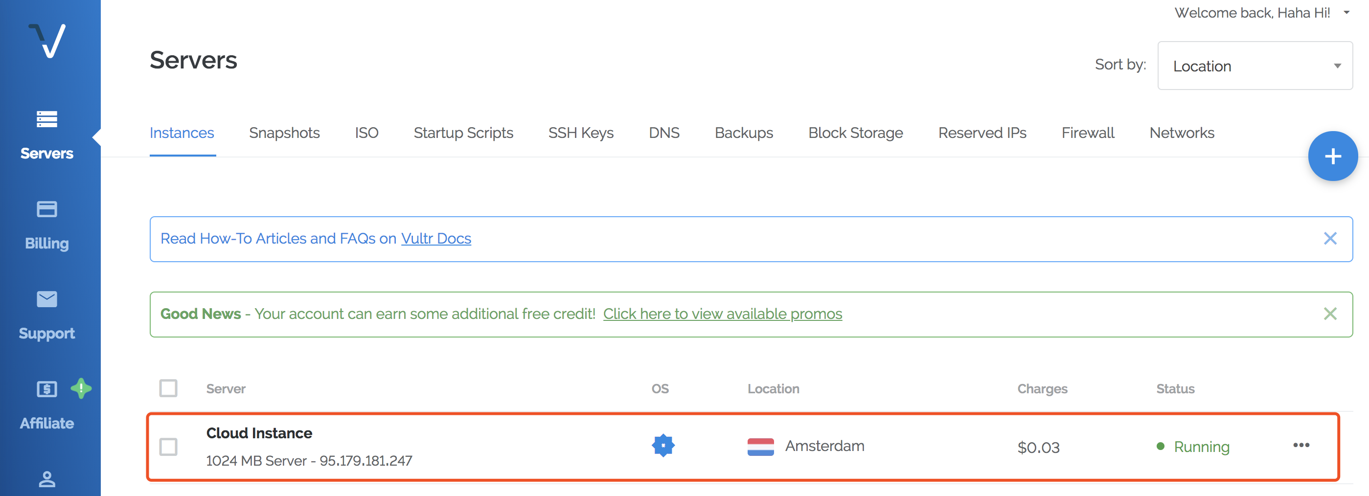 网上找了一些VPS测评文章之后,选择尝试提供商Vultr,并在Vultr上完成注册和充值。