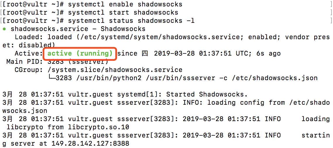 systemctl enable shadowsocks # 设置ss为开启启动项