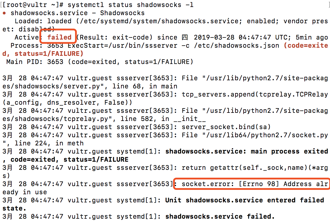 上图失败原因是socket绑定的地址正在使用,显示“socket.error: [Errno 98] Address already in use”。