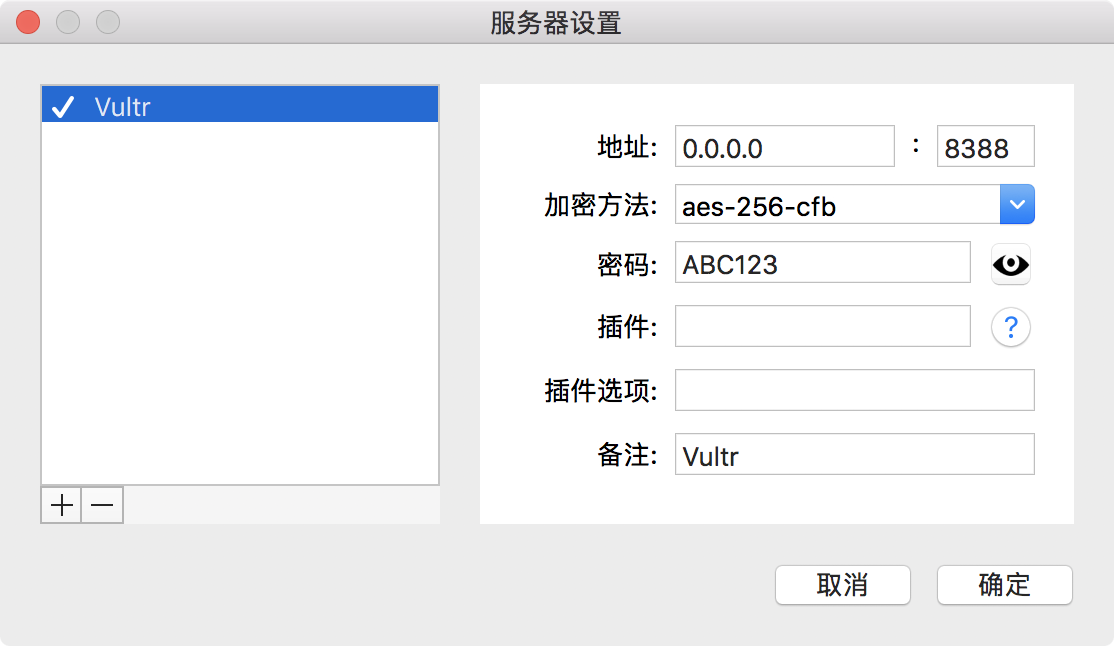 首先部署服务器(Deploy new servers),然后在该服务器上安装SS服务端并配置参数。要留意是在服务器上,而不是本地~ 血的教训……